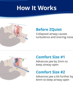 A:During sleep, the back of your throat relaxes too much, leading to muscle collapse and airway blockage. This can result in awakening with choking and gasping for air. Our ZQuiet™ Mouthpiece gently positions your jaw forward in the optimal sleep position.Widening your airway, ensuring better oxygen flow, and putting an end to sleep apnea.Wear it before sleeping and you’ll wake up feeling refreshed!