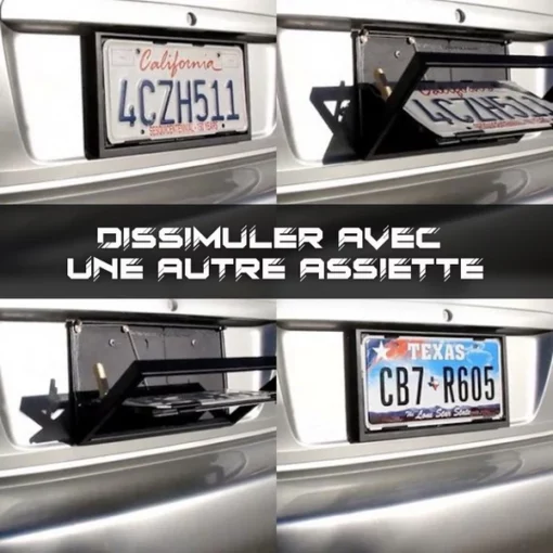 Permet à l’utilisateur de cacher sa plaque d’immatriculation existante et de la remplacer par une autre plaque. Cette fonctionnalité offre une couche supplémentaire de confidentialité et d’anonymat au propriétaire du véhicule. Avec ce type de basculeur de plaque d’immatriculation de voiture, l’appareil est conçu pour tenir et afficher en toute sécurité une plaque d’immatriculation secondaire. Lorsqu’il est activé, le mécanisme fait tourner ou basculer la plaque d’immatriculation actuelle, la dissimulant de la vue, et révèle simultanément la plaque alternative à sa place.